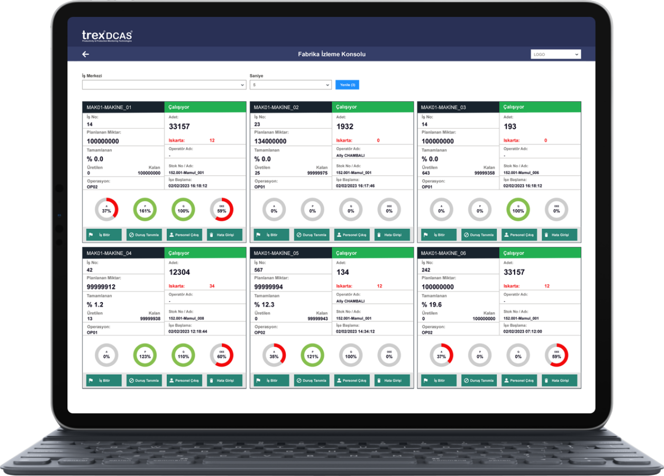 İşletmenizdeki üretim araçlarına yaptığınız yatırımların olması gerektiği gibi etkin kullanıldığını takip edebilmeniz için trexDCAS Lite MES uygulamasından faydalanmalısınız.